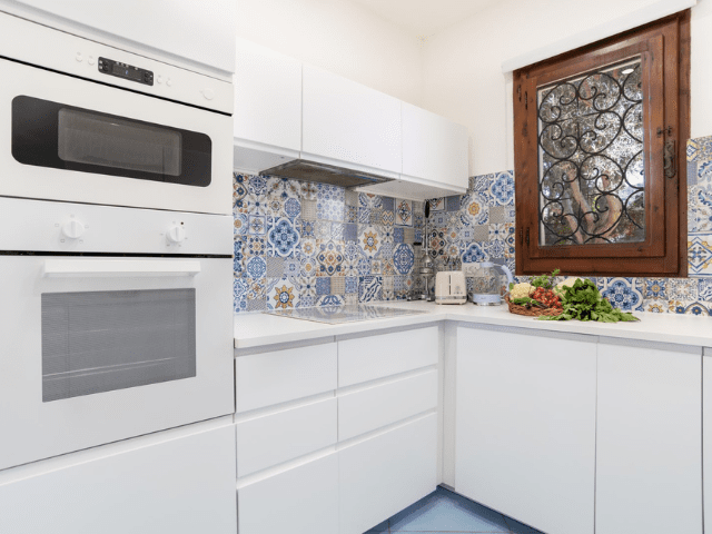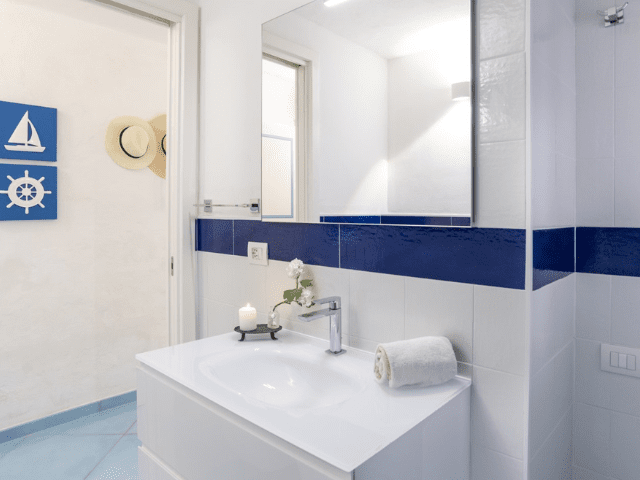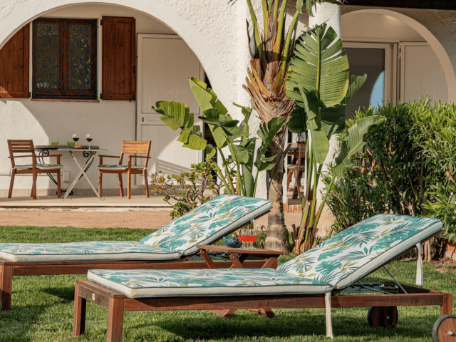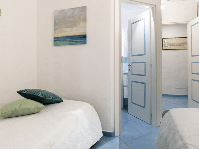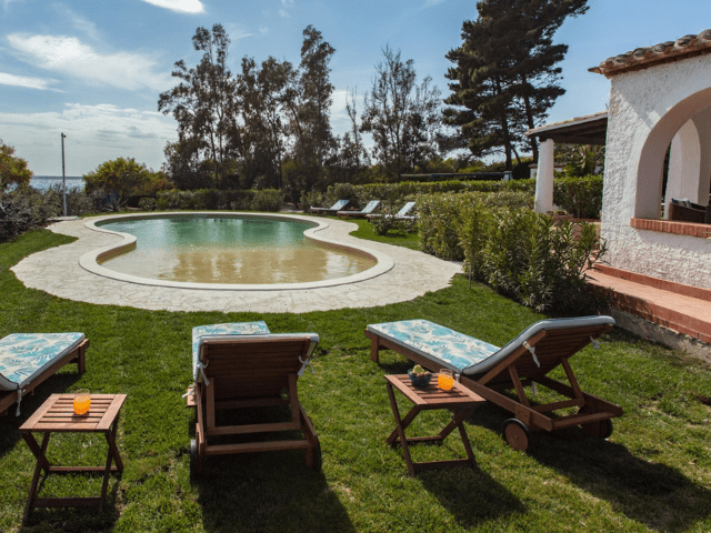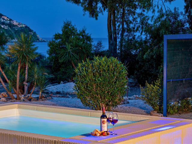All’esterno, la piscina privata, le diverse aree relax con sedute e lettini e il giardino invitano al completo relax. Completano la dotazione una doccia esterna, un’area barbecue e una piccola terrazza non arredata con una vista mare mozzafiato. La lavanderia si trova all’esterno, sotto la scala che conduce alla terrazza. Tutti gli ambienti sono climatizzati, garantendo comfort anche durante le calde giornate estive.