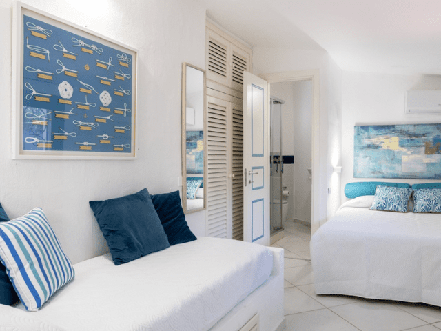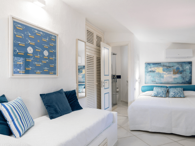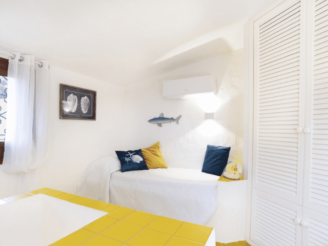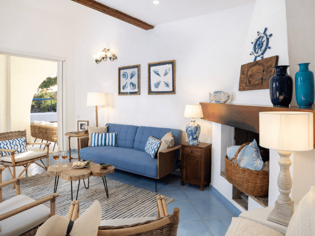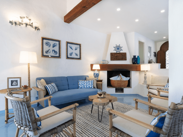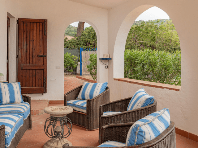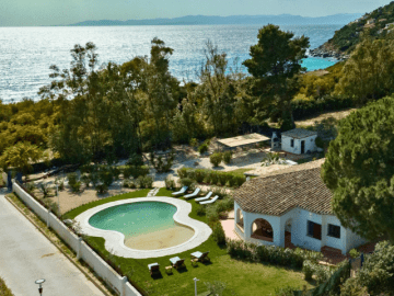 All’interno, la villa accoglie gli ospiti con una luminosa zona giorno open space dall’atmosfera accogliente e vista mare, completata da una cucina completamente attrezzata e ambienti confortevoli e climatizzati. La villa dispone di 5 camere da letto e 6 bagni ed è ideale per ospitare fino a 10 persone, con dettagli curati che uniscono comfort, privacy e autentico fascino sardo.