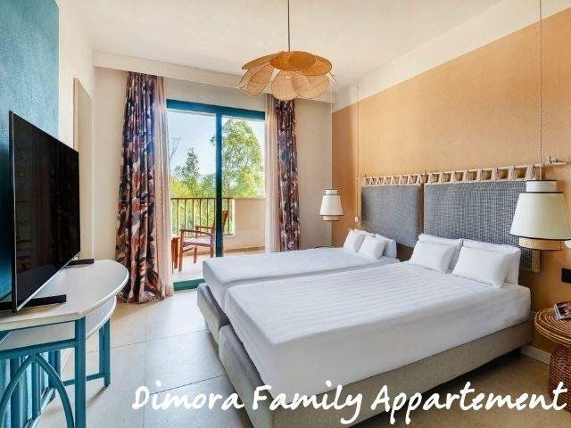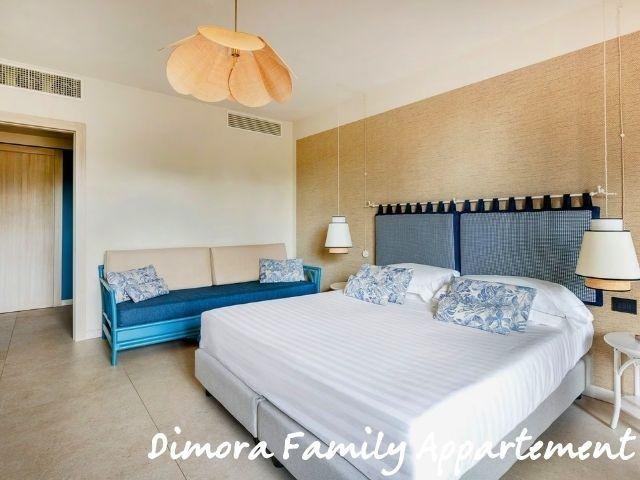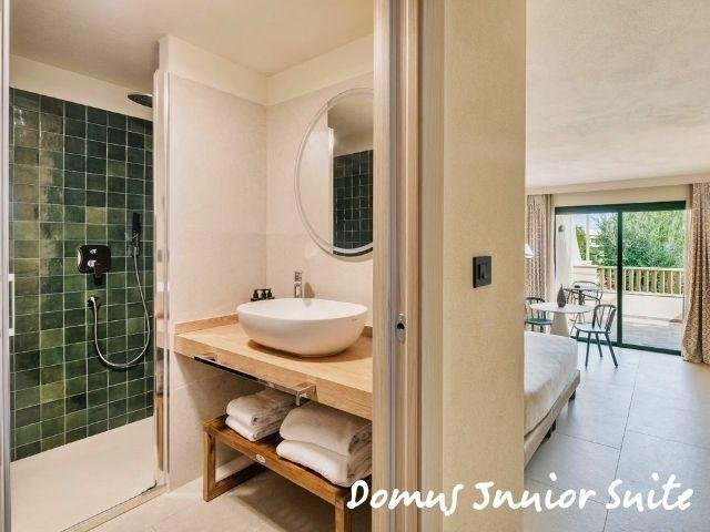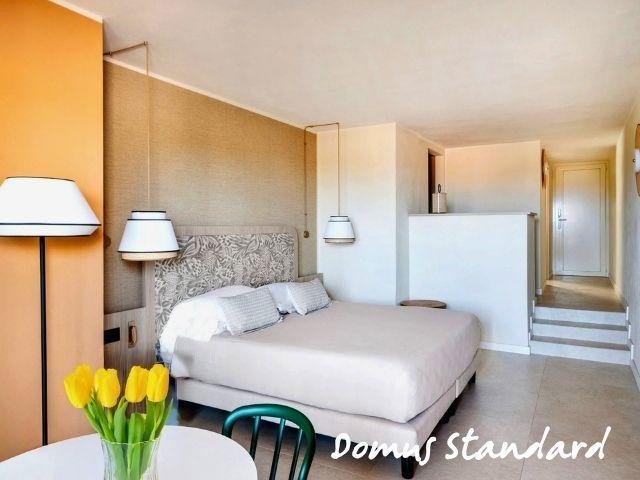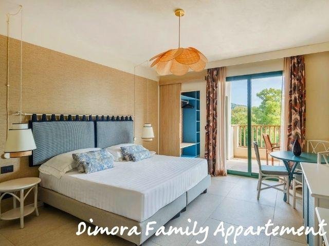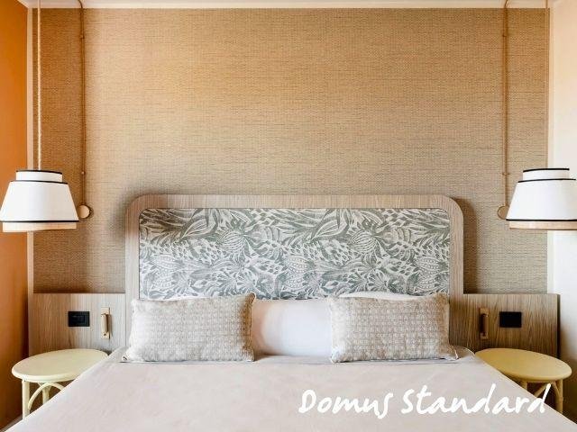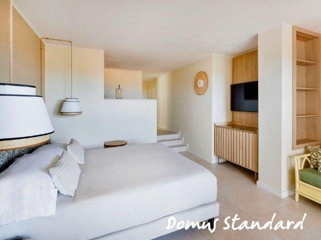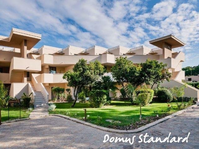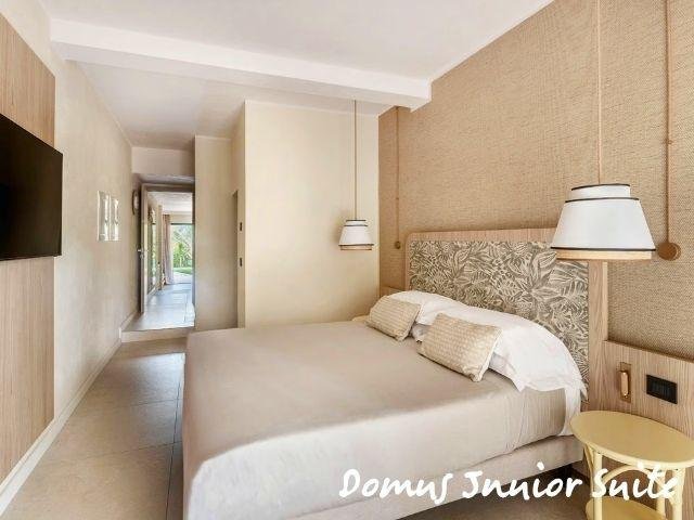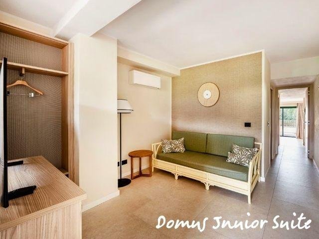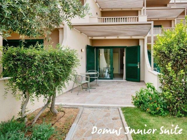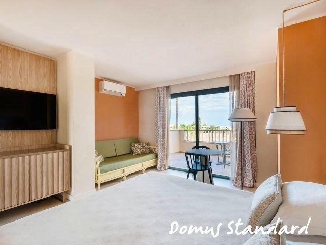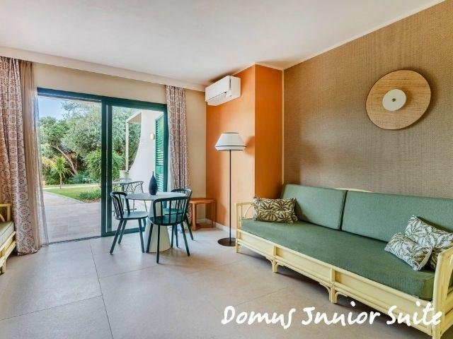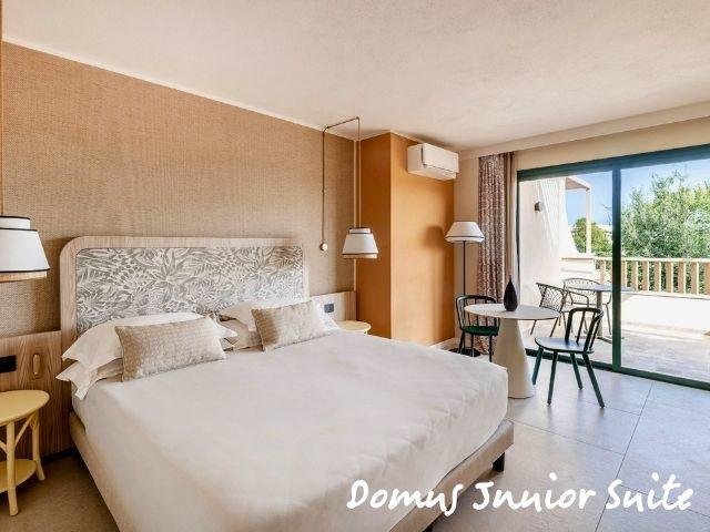 Le Domus Standard si trovano in una zona più tranquilla e curata, a circa 500 m dal mare, rinnovate, con ambienti luminosi e balcone; includono servizio ristorante Mirto con tavolo riservato e bevande in bottiglia. Le Domus Junior Suite offrono più spazio con camera separata e zona giorno, ideali fino a 4 persone. Gli appartamenti Dimora Family sono ampi bilocali con due bagni e terrazza, perfetti per famiglie.