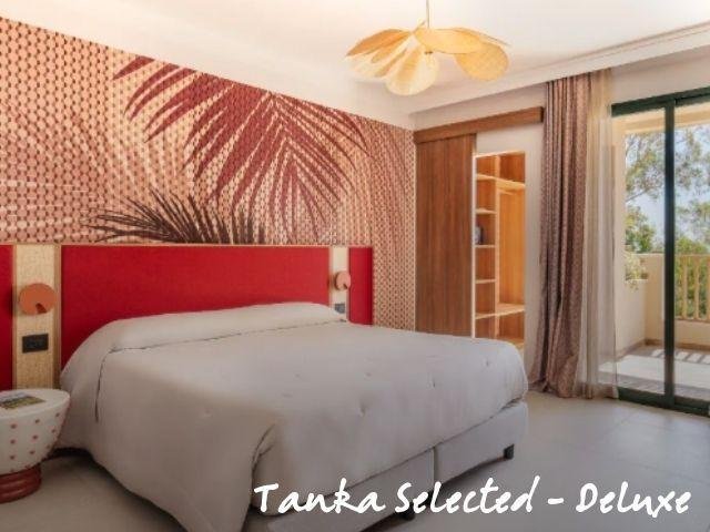 Le circa 850 camere e unità abitative del VOI Tanka Village sono distribuite in diverse aree con caratteristiche differenti. Le camere Monte Garden si trovano nella zona collinare superiore, immersa nel verde, ideali per chi cerca tranquillità e panorami, a circa 600–800 m dal mare. Le Monte Superior sono più vicine alla spiaggia (400–600 m), sempre in posizione rialzata tra oleandri e vegetazione mediterranea. Le Casbah Standard si trovano in un’area in stile villaggio con edifici a due piani e patii, a circa 300–600 m dalla spiaggia, mentre le Casbah Superior, più vicine (200–500 m), offrono comfort aggiuntivi come tavoli riservati al ristorante Oasys e una bottiglia di vino al giorno.