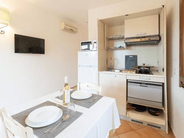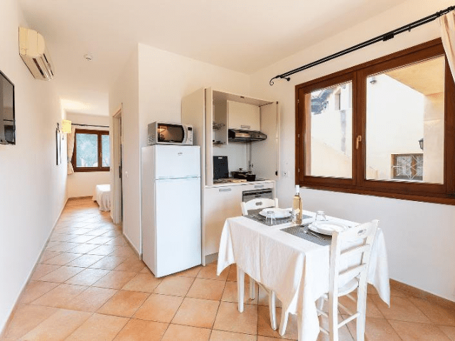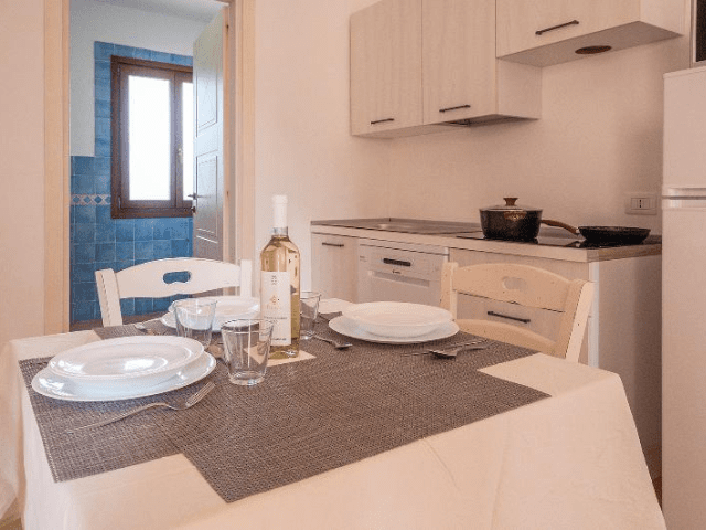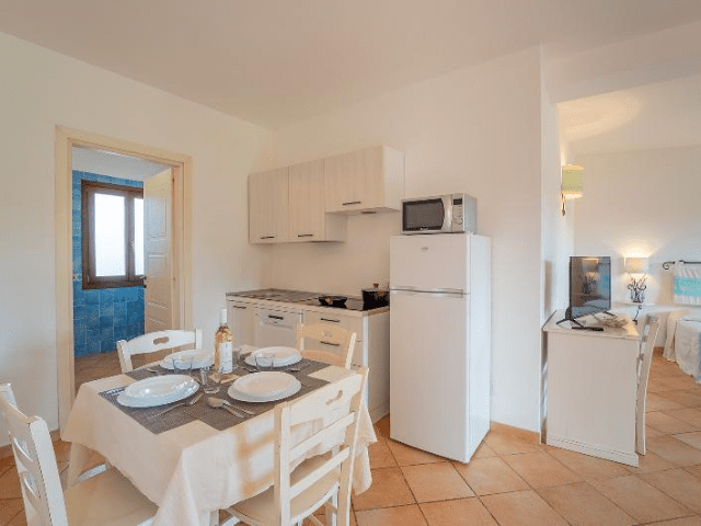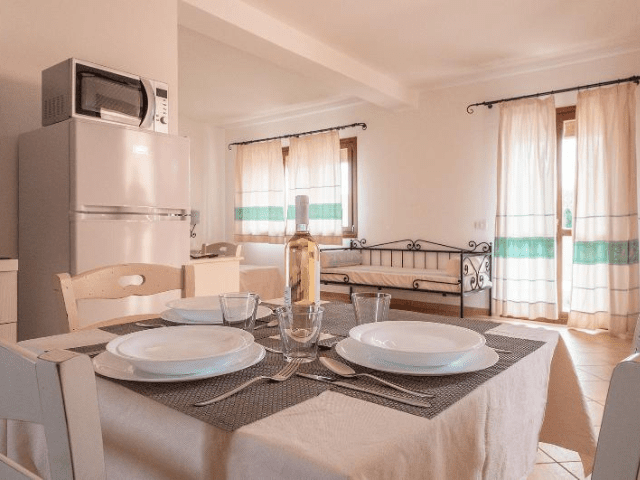 Nel residence Baia dei Mirti è possibile prenotare monolocali oppure appartamenti composti da soggiorno con due posti letto e camera da letto separata. Gli alloggi si trovano al piano terra con terrazza oppure al primo piano con balcone. Tutti gli appartamenti dispongono di un angolo cottura con lavastoviglie e sono dotati di aria condizionata e televisione. Il Wi-Fi è disponibile nelle aree comuni del residence.