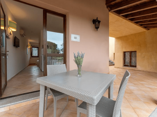 A circa 800 metri dalla struttura si estende l’ampia spiaggia sabbiosa di Vignola Mare, dove si trovano ristoranti, chioschi e un centro di sport acquatici che offre corsi di kitesurf, surf e immersioni, oltre al noleggio dell’attrezzatura.