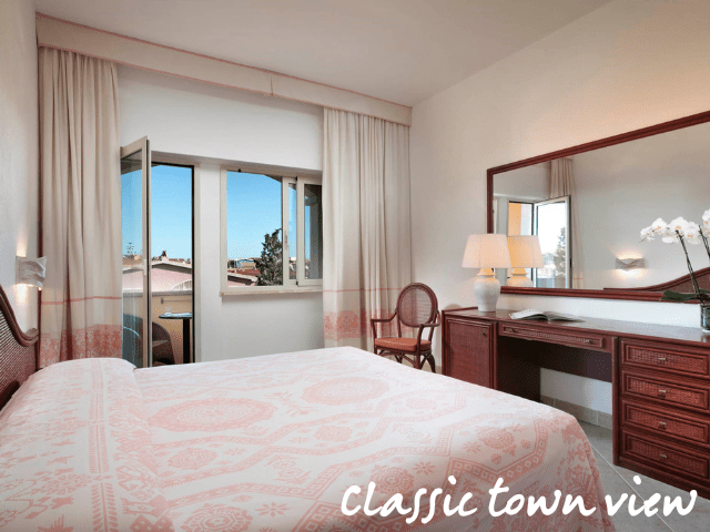 Ogni camera del Gabbiano Azzurro Hotel & Suites vi accoglie con un'atmosfera familiare non appena entrate. Ognuna dispone di un balcone privato, che offre una scelta di viste tra il mare sereno e l'incantevole Golfo Aranci. I comfort standard includono aria condizionata, TV a schermo piatto e Wi-Fi, assicurando un soggiorno confortevole per ogni ospite. Le camere sono progettate per ospitare comodamente due persone. Per coloro che cercano un tocco di lusso, le suite con piscina privata sono situate al piano più alto dell'edificio secondario, accessibili tramite un ascensore dalla struttura principale. A seconda del tipo di suite scelto, possono ospitare da due a sei persone.